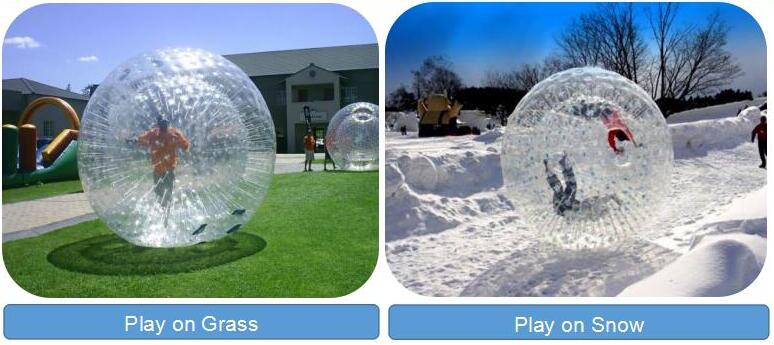 Usage Of Zorb Ball: On Grass, Snow Or Water